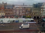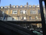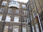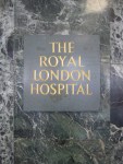 - View from the hospital out onto Whitechapel Road. Note the covered market stalls and Tube station.