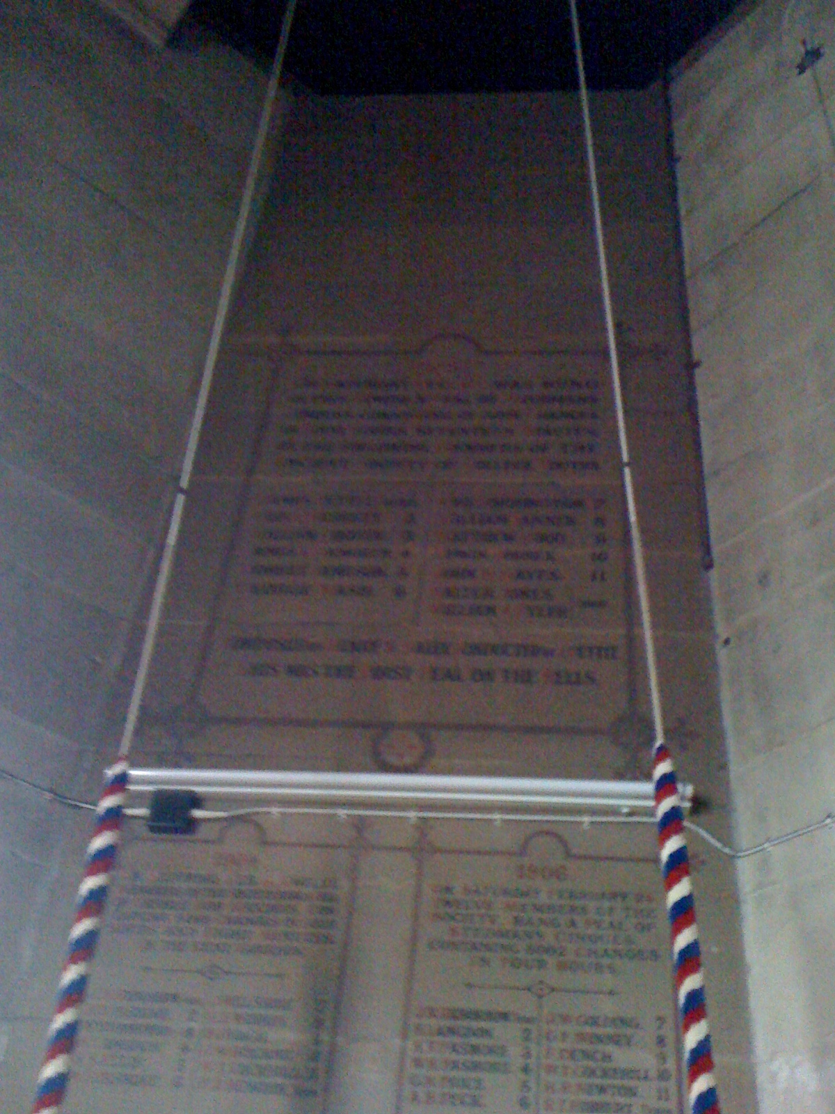 Chapter 4 Gallery 14 Saturday Jun 2014 Original size at 1200 × 1600 ≈ Leave a comment A Peal Board in the Ringing Chamber (with bell ropes hanging down in front) Like Loading...